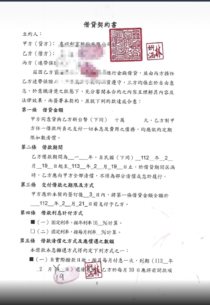 借貸金額: