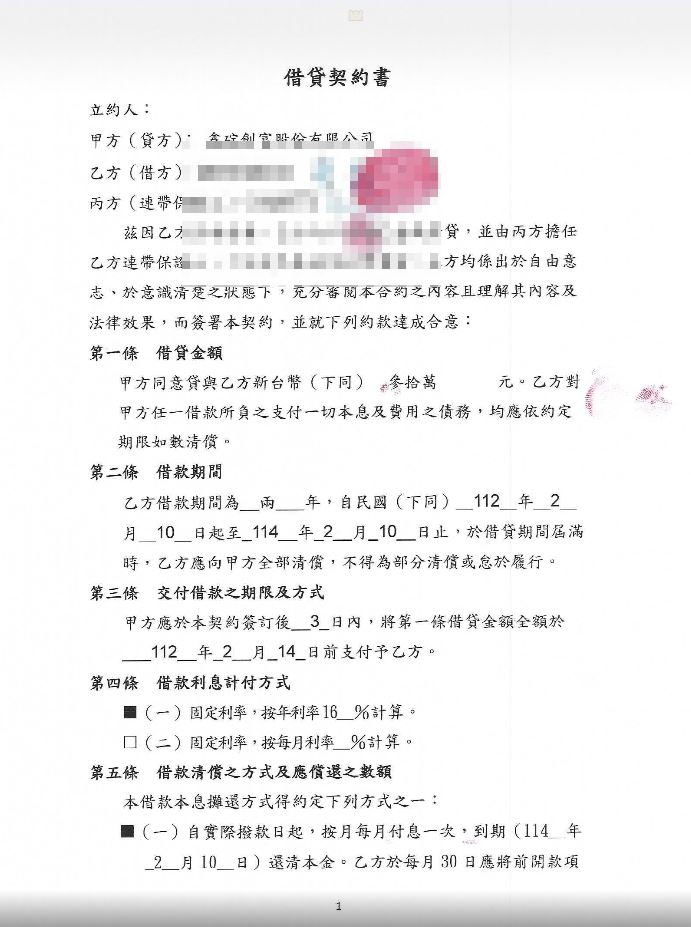 借貸金額: