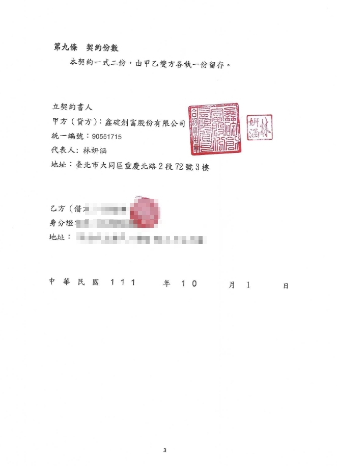 借貸金額:
