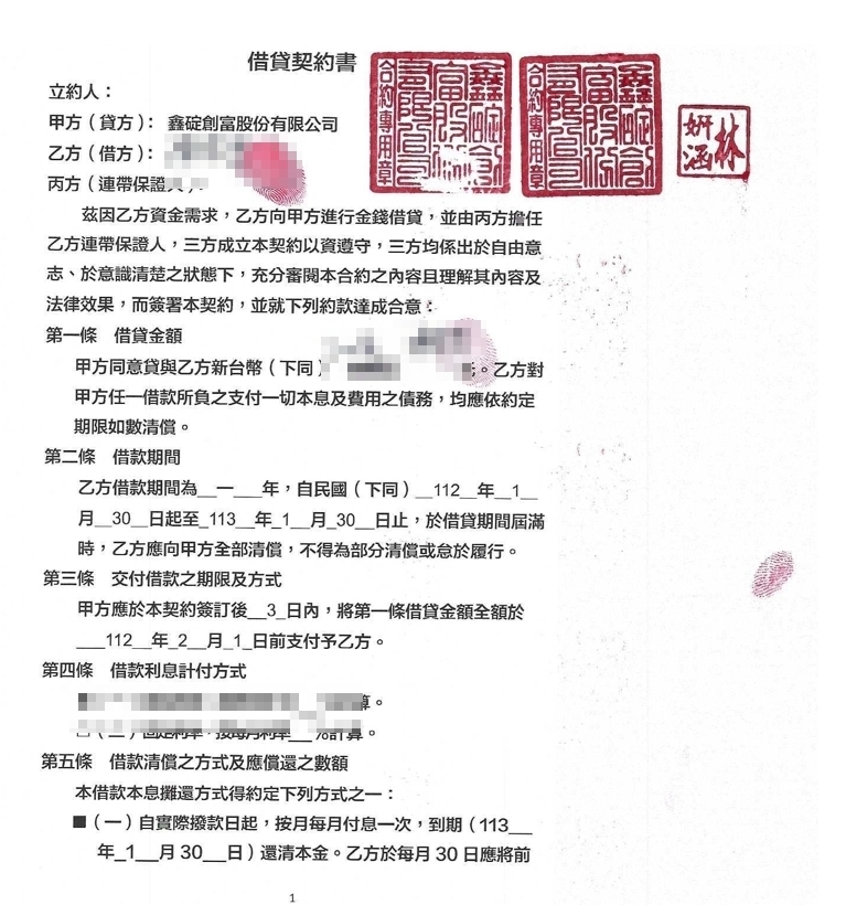 借貸金額: