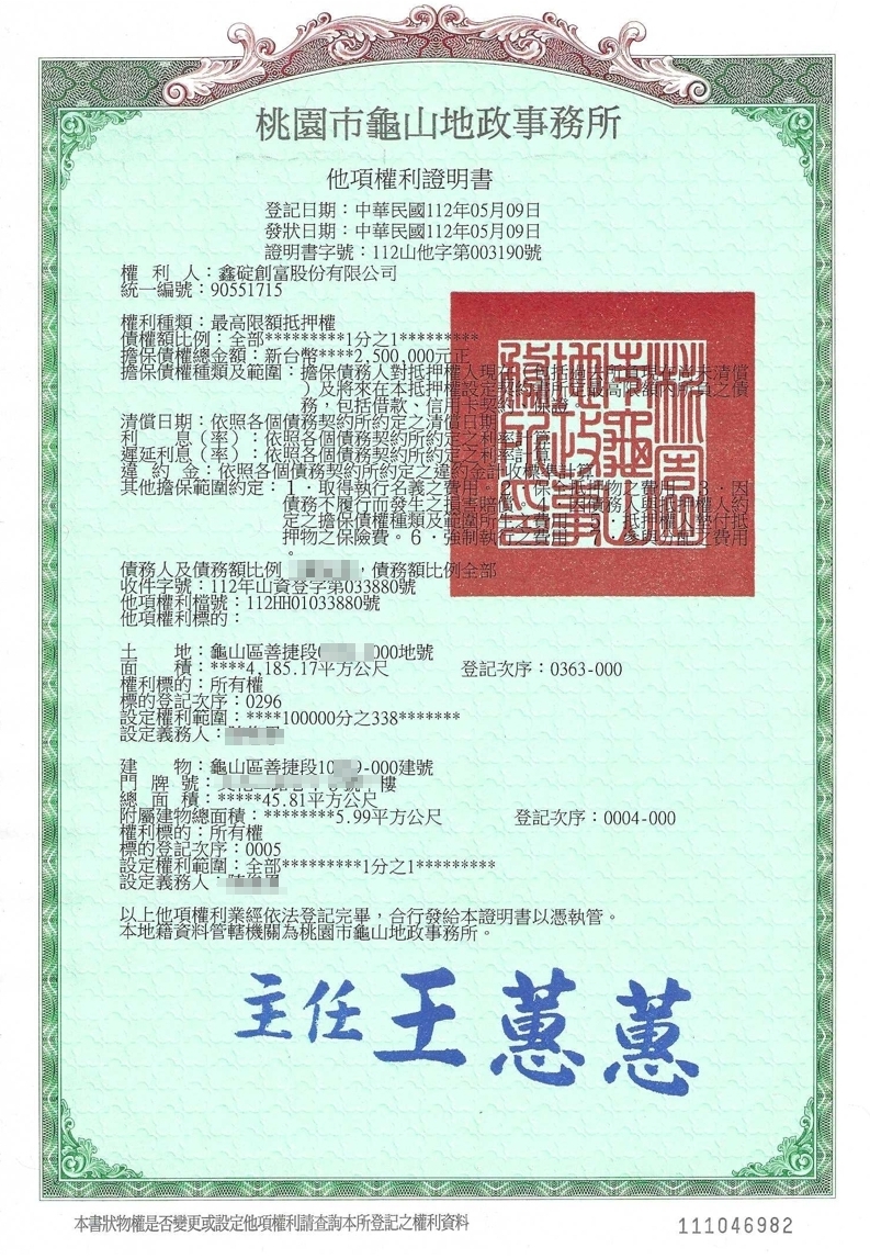 林口新成屋-足額擔保-本息攤還-12個月
